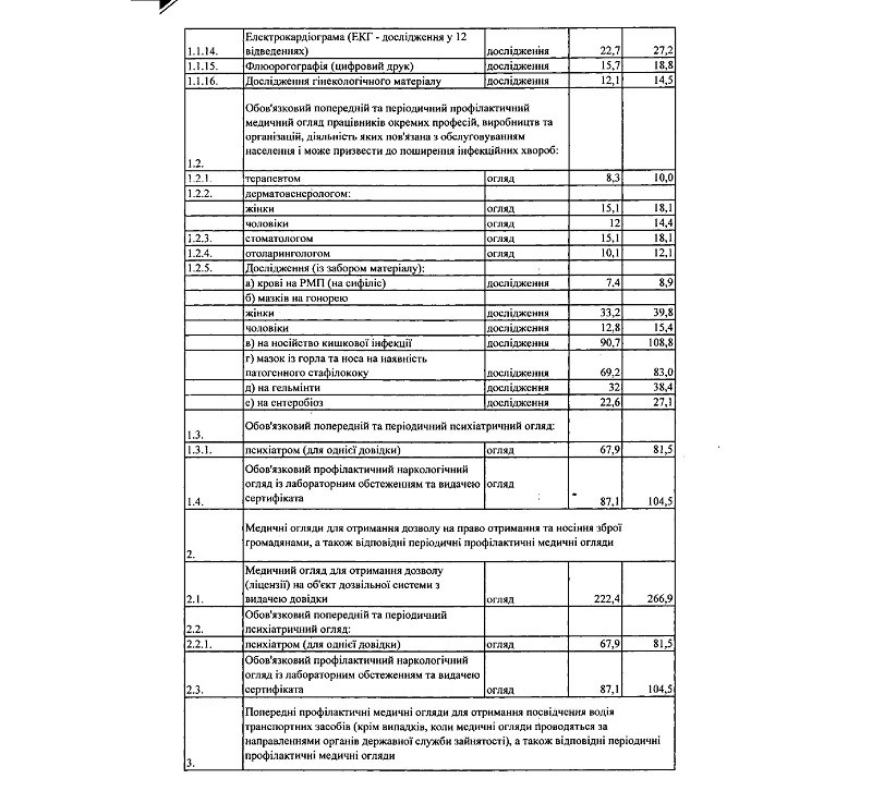 Медичні огляди, а саме: обов’язковий попередній і періодичний медичний огляд працівників, зайнятих на важких роботах, роботах із шкідливими та небезпечними умовами праці, або таких, де є потреба в професійному доборі, а також медичний огляд для отримання виїзної візи здійснюється без направлення сімейного лікаря; обов’язковий попередній та періодичний профілактичний медичний огляд працівників окремих професій, виробництв та організацій, діяльність яких пов’язана з обслуговуванням населення і може призвести до поширення інфекційних хвороб здійснюється без направлення сімейного лікаря за винятком працівників бюджетних установ та організацій (Постанова Кабінету Міністрів України від 23 травня 2001р. № 559) за наявності направлення сімейного лікаря; медичні огляди для отримання дозволу на право отримання та носіння зброї громадянами, а також відповідні періодичні профілактичні медичні огляди здійснюються без направлення сімейного лікаря; попередні профілактичні медичні огляди для отримання посвідчення водія транспортних засобів (крім випадків, коли медичні огляди проводяться за направленням органів державної служби зайнятості) а також відповідні періодичні профілактичні медичні огляди здійснюються без направлення сімейного лікаря. Плата за лабораторні послуги здійснюється тільки у разі самозвернення або без направлення сімейного лікаря / лікуючого лікаря / лікаря який надає консультацію.